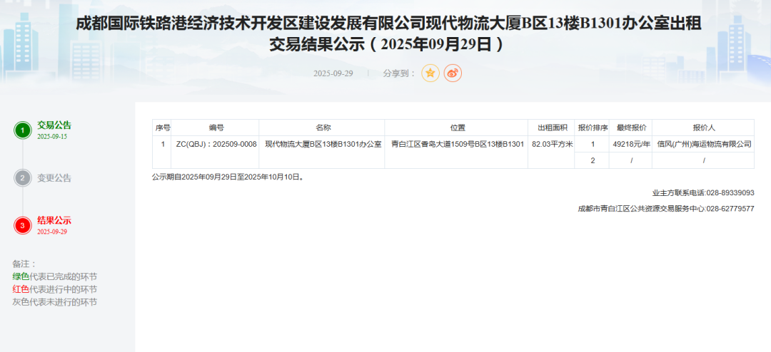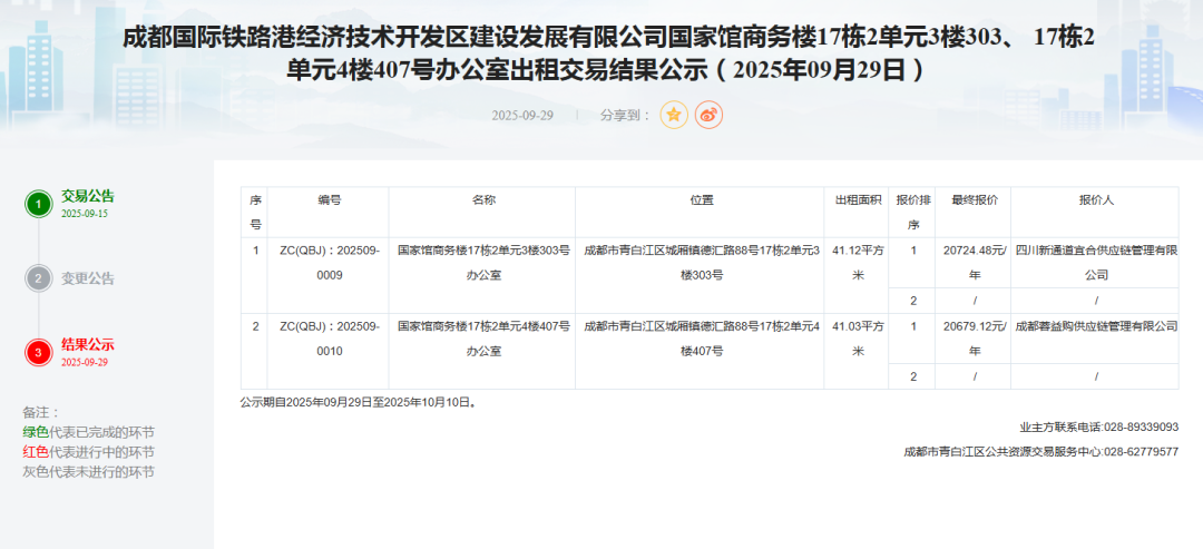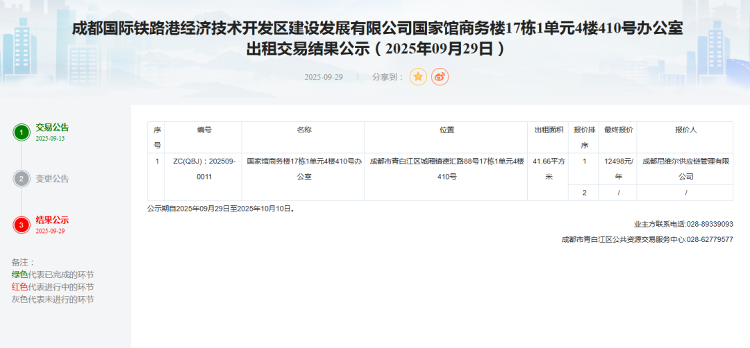 成都国际铁路港经济技术开发区建设发展有限公司出租交易结果公示