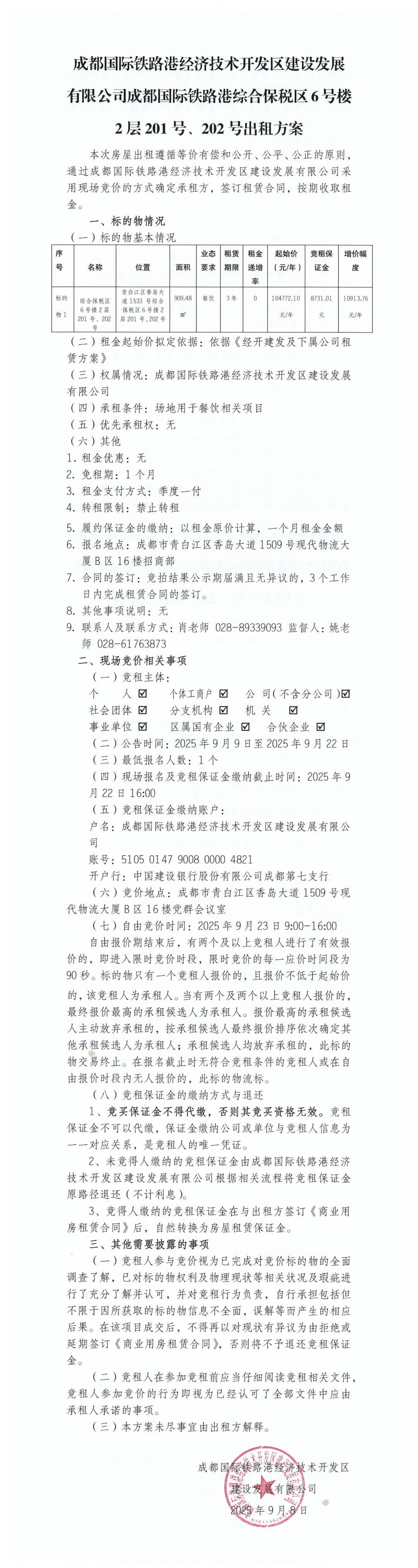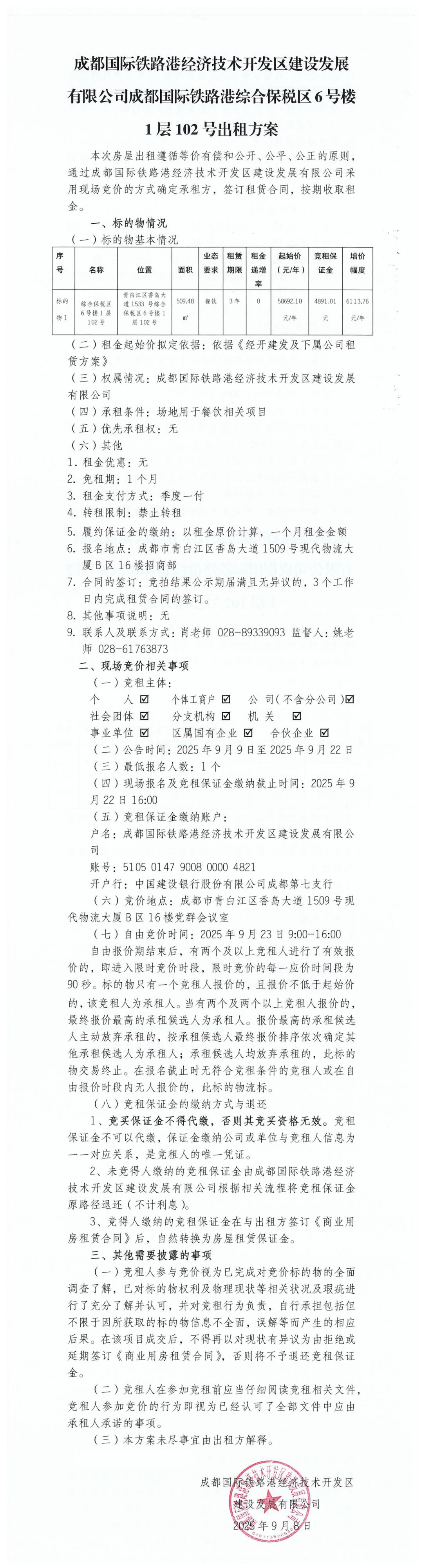 成都国际铁路港经济技术开发区建设发展有限公司资产出租公告