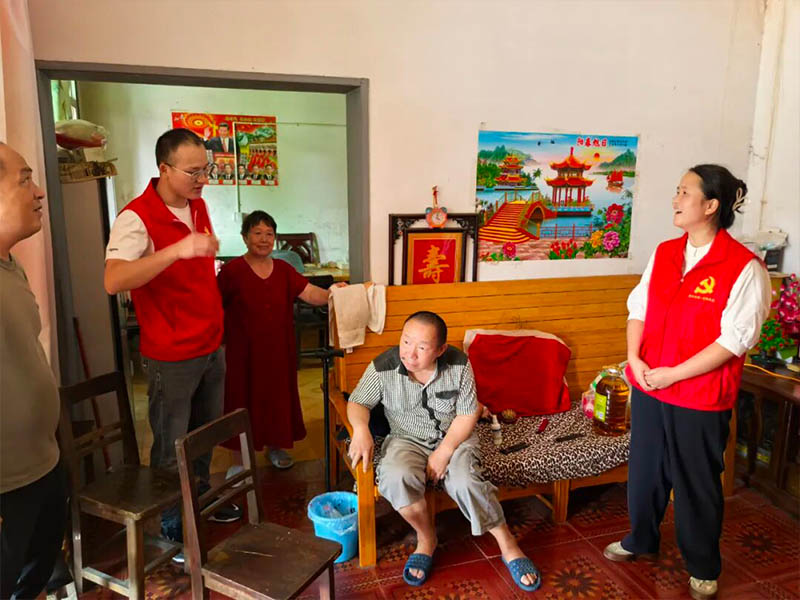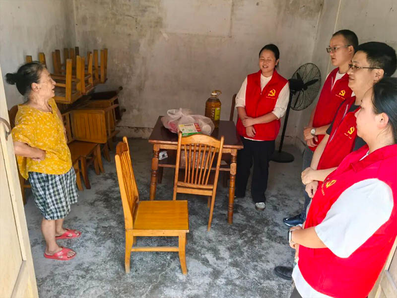 党员志愿者分组对12户困难群众进行走访慰问,为他们送去了米、面、油等生活物资,并与群众亲切交谈,详细询问身体状况和生活近况。