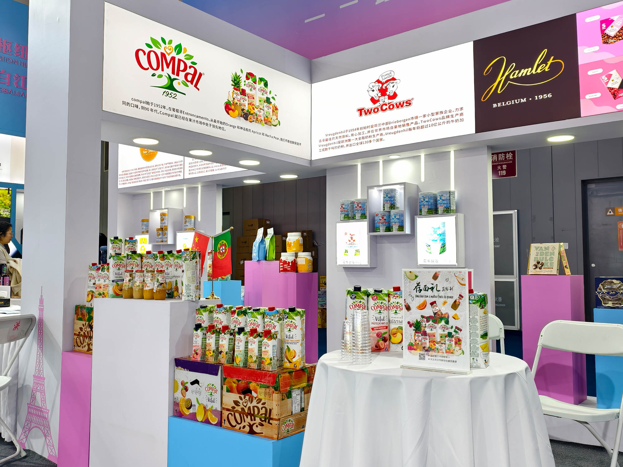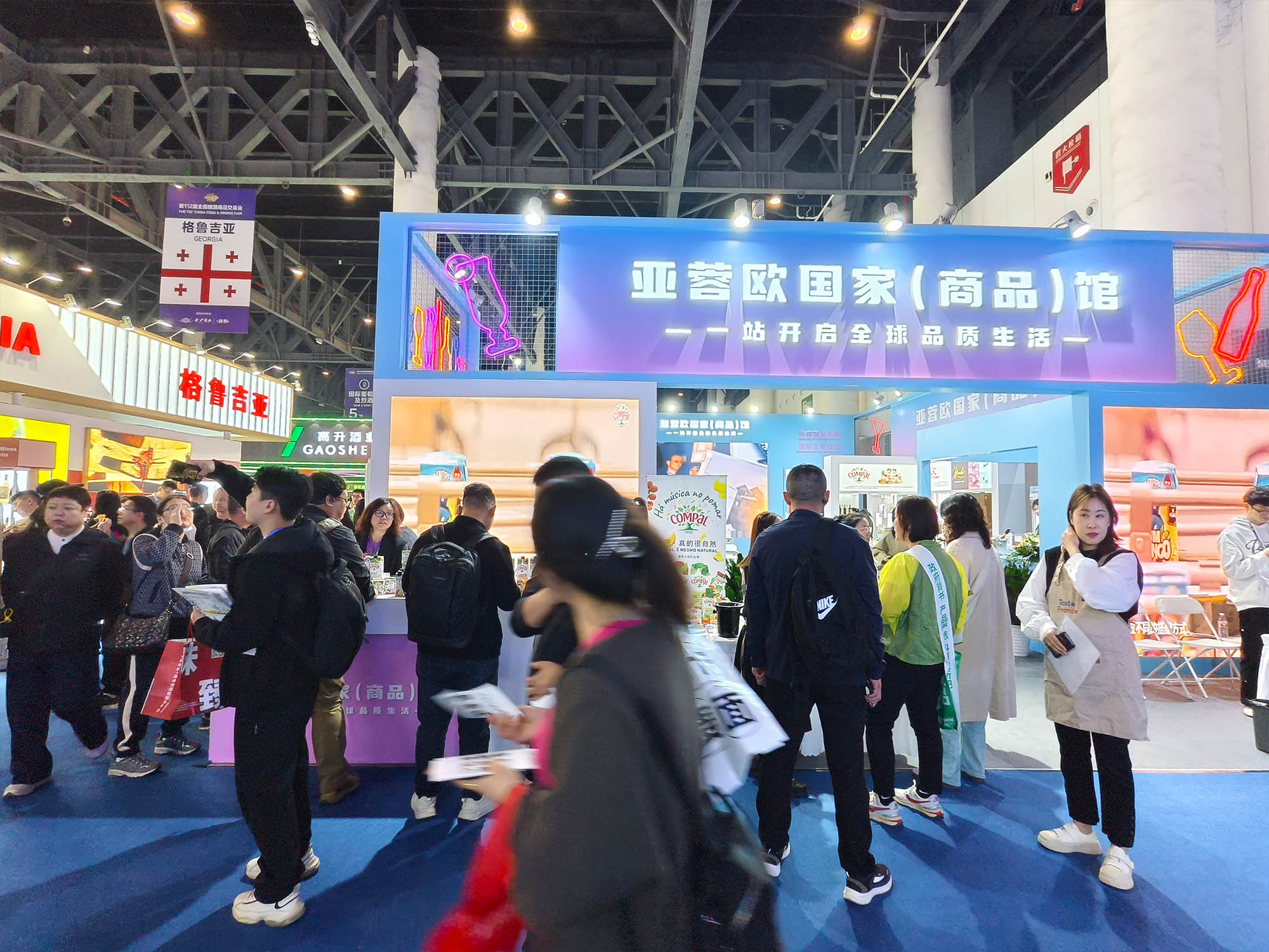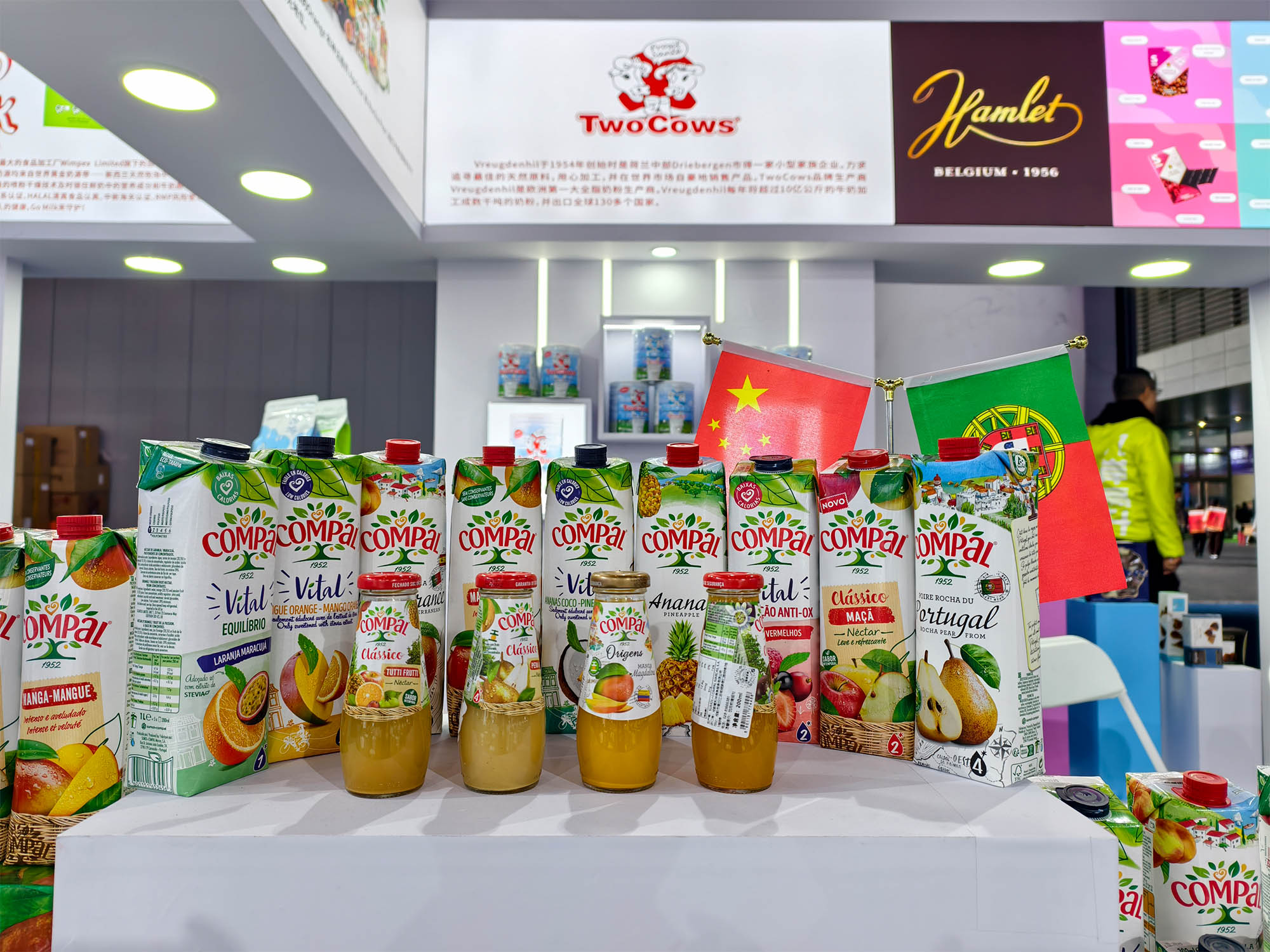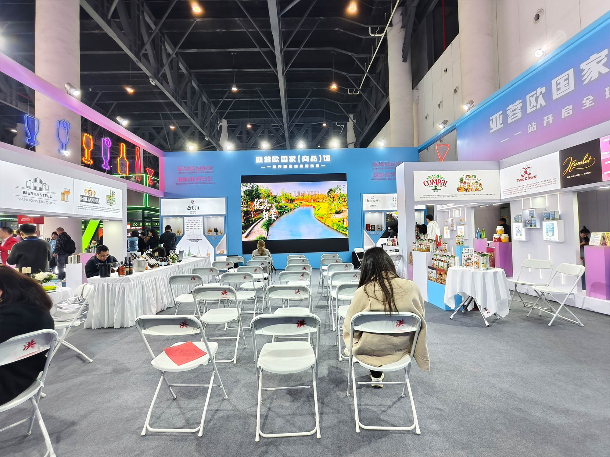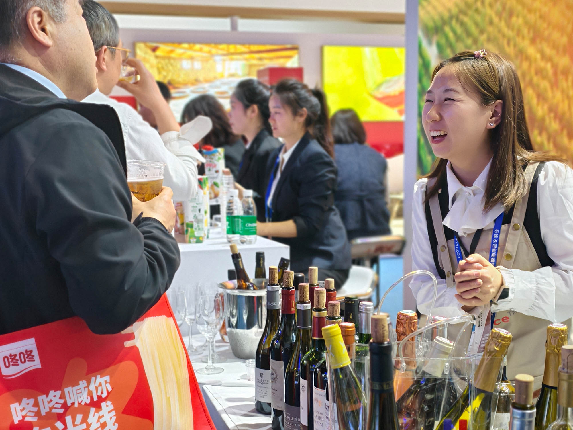 亚蓉欧国家(商品)馆依托青白江区作为中欧班列(成渝)重要枢纽的开放优势,集中展示了来自欧洲、亚洲等地的食品、酒饮、母婴等特色商品。展馆内,葡萄牙百年果汁品牌Compal(康派)和新西兰高端奶粉品牌go milk分别举办专场路演活动,通过产品品鉴、品牌推介等形式,吸引众多采购商驻足洽谈,达成多家合作意向。首次通过中欧班列糖酒会专列运输的GCF法国大酒窖集团爱宾葡萄酒、哈姆雷特巧克力也亮相本次展馆,凸显“一带一路”沿线国家的贸易合作成果。